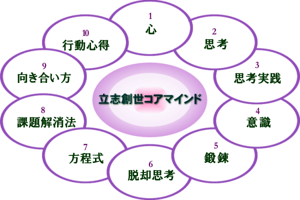 立志創世八十八訓は、立志創世コアマインドと、シンカのための10の要素からなります